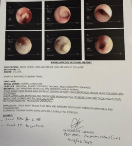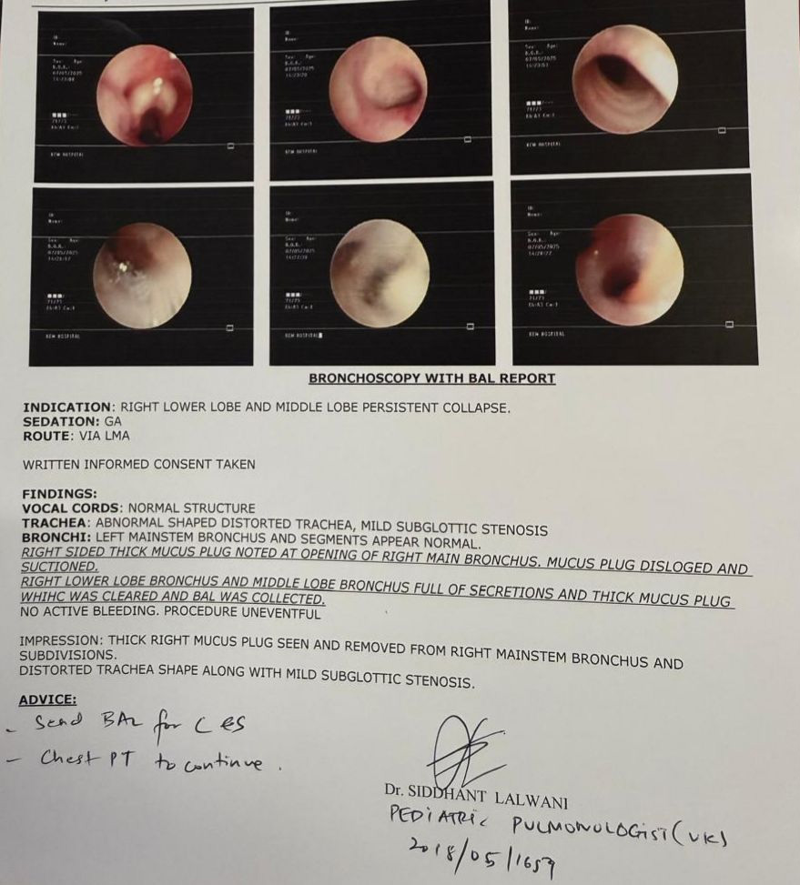 Dr. Siddhant Lalwani, upon evaluating the infant, suspected an obstructive element and recommended a diagnostic bronchoscopy. Given the prolonged course, lack of response to treatment, and localized worsening on imaging, bronchoscopy was both a diagnostic and potentially therapeutic step.